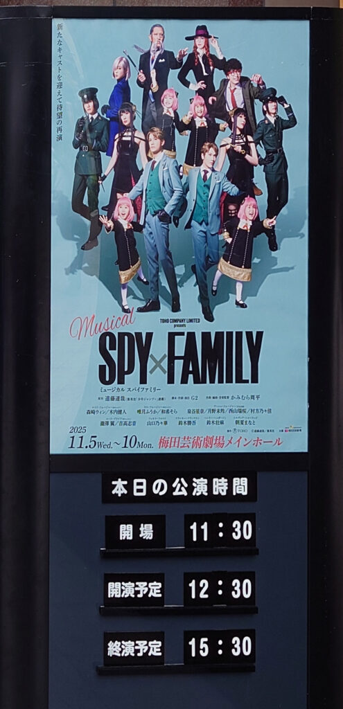 梅田芸術劇場メインホールの「SPY×FAMILY」を娘と観に行ってきました。今回は2023年の再演なので内容は基本的にはだいたい同じ。ですが、演出のG2さんによれば「再演とは考えていない」ということなので、かなりブラッシュアップされてるようです。前よりシルヴィアの場面が増えた気もしましたが、前回の記憶が曖昧なので気のせいかも。