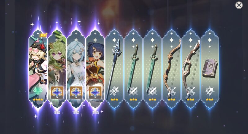 ★4キャラ ファルザン×5、ベネット×2、ヤフォダ×1、コレイ×1、セトス×1、香菱×1