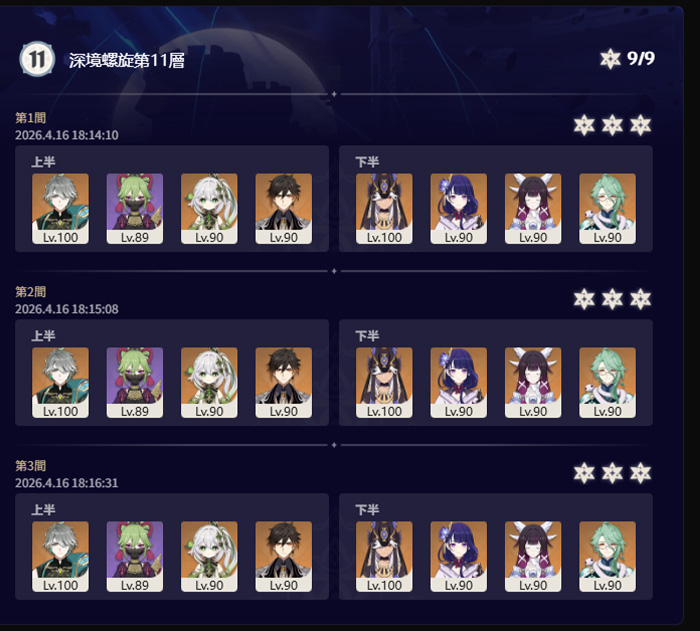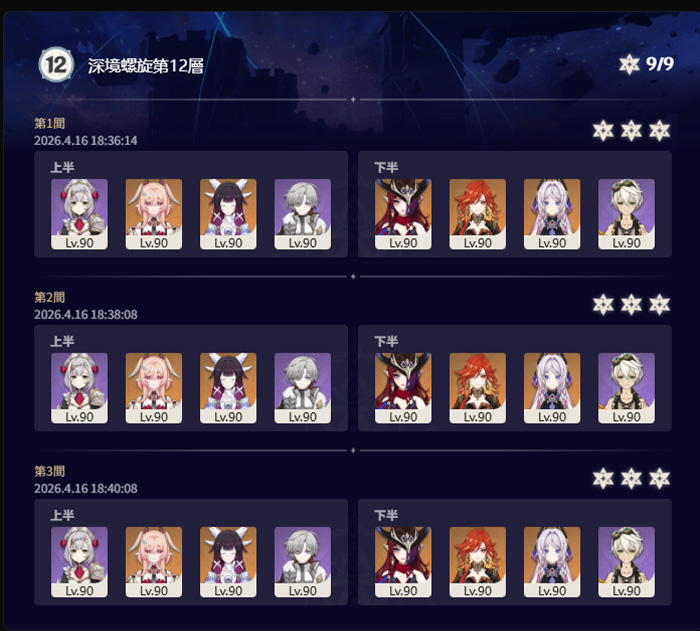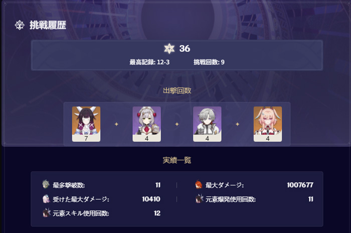 幽境終わってからの螺旋だと難易度的にも下がるので、気楽にチャレンジできる感じ。実績欄にアルハイゼンもいてちょっと嬉しかったです。