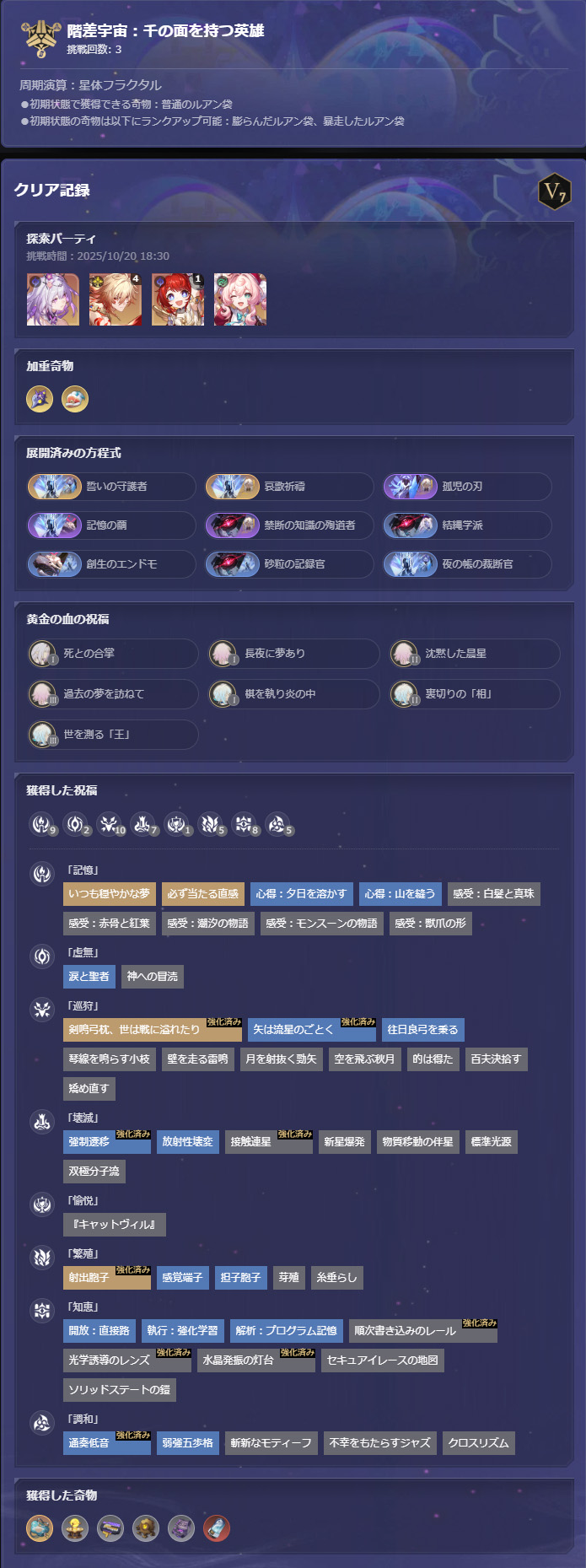 周期演算行ってきました。ボスがボリュクスなので、キャストリスかな~と。ボリュクスの弱点が風、量子、虚数なので、モーディスも使えるし、いつものトリビー&ヒアンシーも合うし、無駄のない編成。普通に強いので道中も特に困ることなくクリアできました。