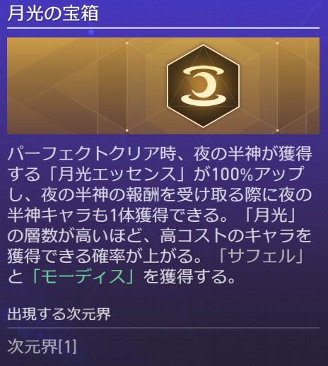 「重なる絆」の「夜の半神」の最高級報酬をもらうというのもなかなか大変でしたが、投資戦略「月光の宝箱」のおかげで達成できました。それでも達成できたのは終盤だったから、それなしだと本当に大変だと思います。何度かチャレンジはしたけど全勝しても届かなかったです。早くからメンバーが上手く集まればいけるのかな。