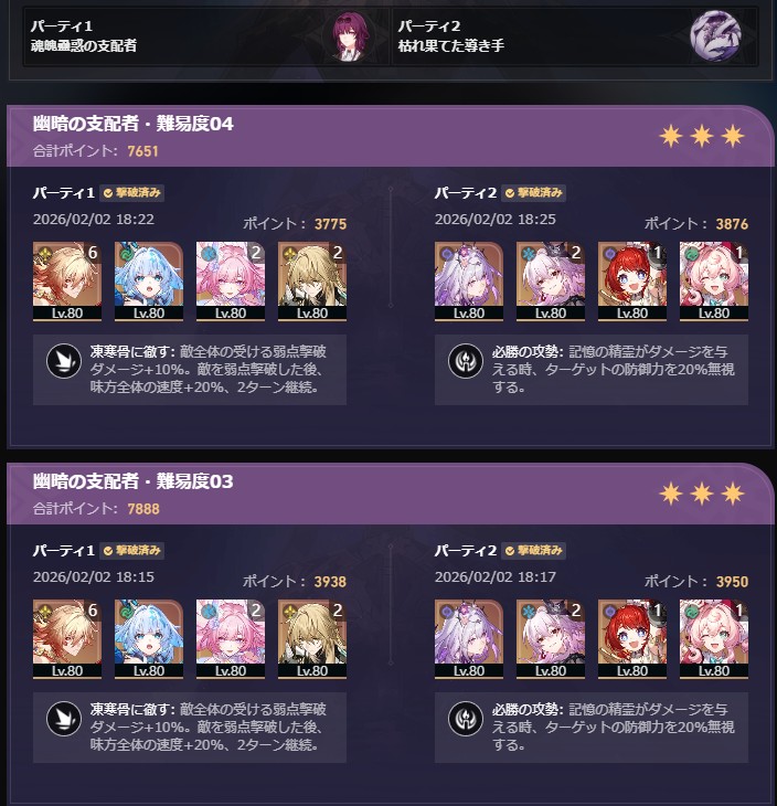 モーディス完凸、キャストリス無凸でこの成績なので、長夜月がいるとはいえやっぱりキャスは飛びぬけて強いということなんだろうなぁ。サブ垢は末日いつも苦労するのだけど、今回は本垢と似たような編成が組めたので1回で6600ポイントクリアできました。あちらはモーディス1凸、トリビー1凸以外は無凸で、ケリュドラいないからセイレンスにしてみたけど。後半は長夜月もヒアンシーも無凸だけど3709ポイント取れてたから、やっぱりキャストリス強い。。。