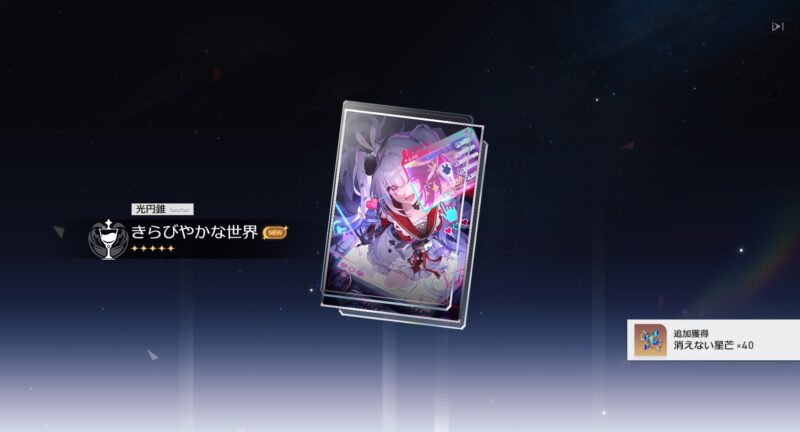 火花は実装日に引いたのだけど、アップするのをすっかり忘れてました。前回の爻光さんは結構沼ったけど、今回はキャラも光円錐もすり抜けなくて良かったです。